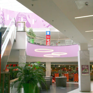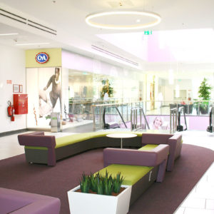 Umgestaltung der allgemeinen Flächen und des Foodcourt im SC Velenjka im Zuge der Neuorientierung mit Schwerpunkt „Shopping Center für die Frau“. Ziel war es ein durchgängiges Erscheinungsbild zu schaffen, das die moderne, slowenische Frau in den Vordergrund stellt. Ein klar wiedererkennbares Farb-, Form-, Licht- und Geruchskonzept gibt dem SC eine völlig neue, anregende und feminine Wohlfühlathmosphäre. Die neuen Brandfarben Magenta und Grün wurden durchgängig in Szene gesetzt. Speziell für das Center entworfene Ringleuchten betonen die einzelnen Bereiche. Nicht nur Farben und Formen sondern auch Zitate nationaler und internationaler Persönlichkeiten finden sich im gesamten Shoppingcenter wieder.