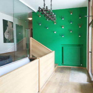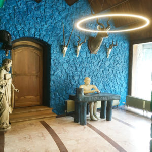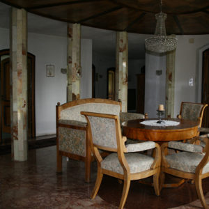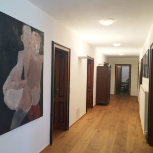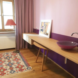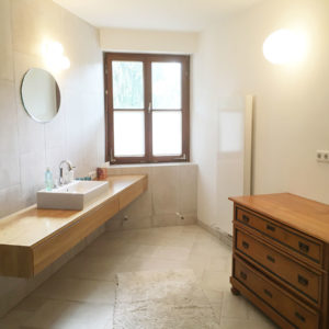 Ein Gutshof aus den 70ern wurde sozusagen „refreshed“! Die Steinböden wurden belassen, alle anderen Räume wurden mit bis zu 5m langen, geölten und gebürsteten Holzdielen belegt. Die gesamte Gestaltung samt Möblierung wurde geplant und die Farbgebung und Beleuchtung dem sehr ausgeprägten Kunstsinn des Bauherrn angepasst. Der Hof dient als Feriendomizil für die gesamte Familie und durfte durchaus Hotelcharakter haben. Die Komplettsanierung des Hallenbades war nicht wirtschaftlich und somit wurde das Hallenbad mit einer Holzkonstruktion überbaut und es wurde ein Fitness-, Sauna- und Arbeitsbereich geschaffen. Der sehr großzügige Außenbereich wurde für große Familienfeiern und Einladungen adaptiert.
