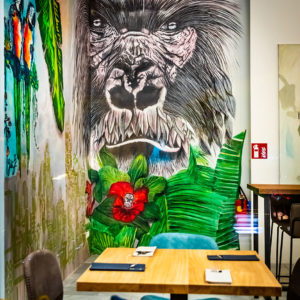 Außergewöhnlich die Kunst im Restaurant. Großformatige