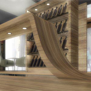 Es sollte eine Lounge für Asien entworfen werden, in der das Miteinander der Geschäftspartner im Vordergrund steht. Diese Lounge soll jederzeit von einem Standort zum anderen verlagert werden können und sich durch die CI jederzeit in eine andere Location einfügen können. Eine Lounge, die sich in ihrem Gesamteindruck sehr elegant und westlich darstellen sollte, das waren weitere Anforderungen an das gewünschte Konzept. Das heißt es muss jederzeit reversibel sein, unbedingt ein modulares Konzept aufweisen. Aussagekräftig in Ihrer Formen- und Farbensprache, um eine eindeutige Wiedererkennung zu gewährleisten und letztlich die Möglichkeit zu bieten, die Stimmung in der Lounge von Cafe-Lounge tagsüber auf Wein-Lounge am Abend zu verändern.